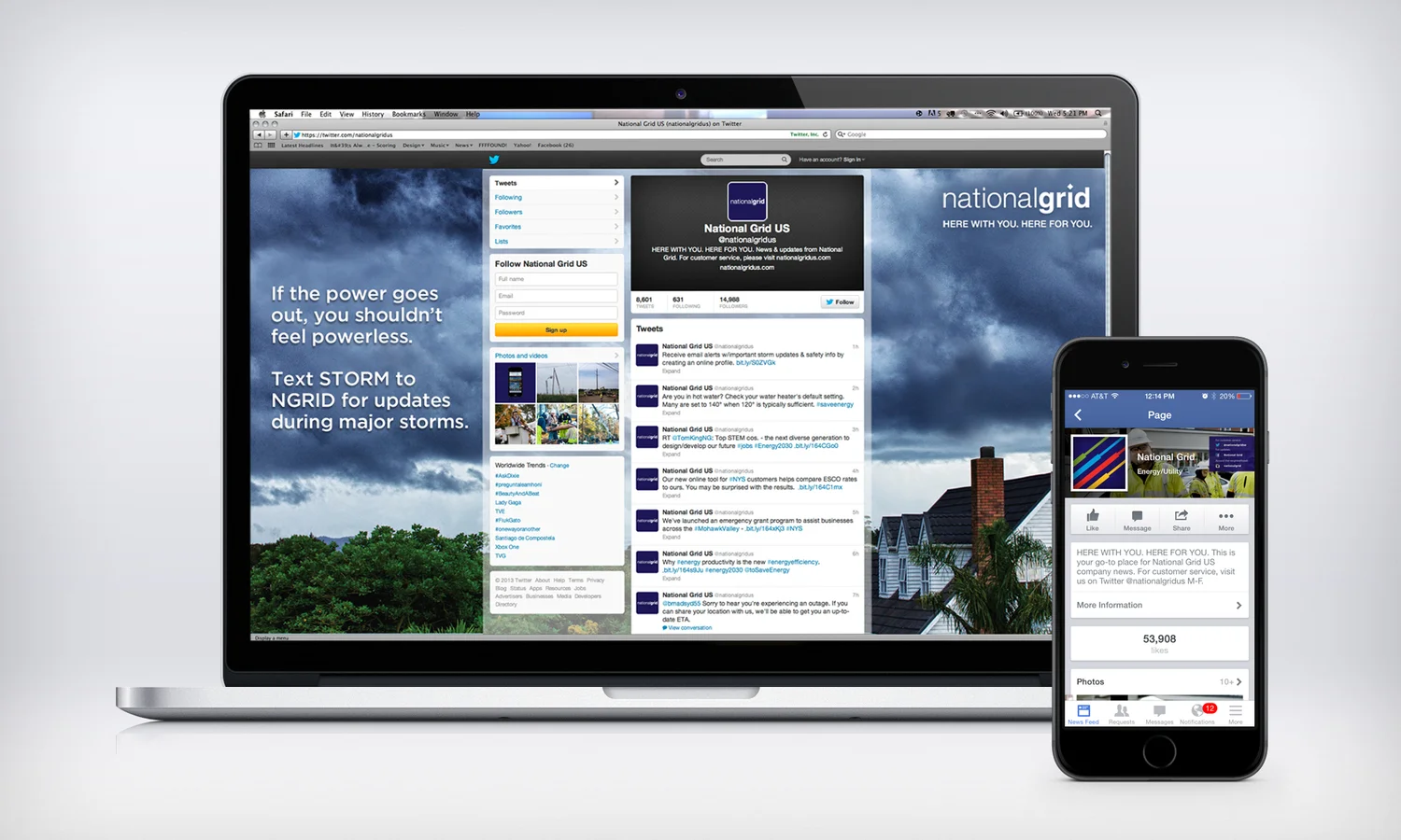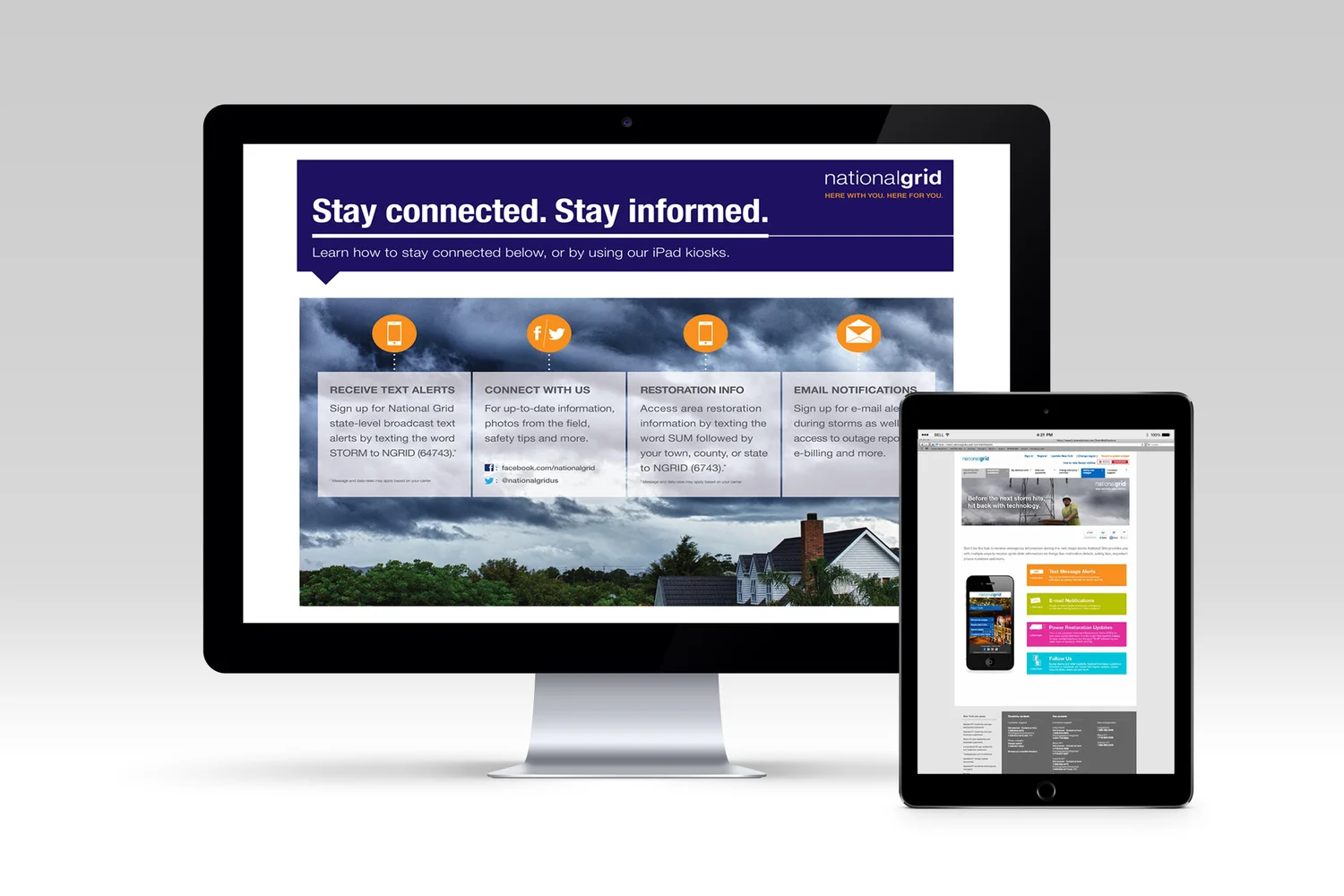 The Northeast has definitely been hammered by its share of storms in the last few years. The best way to get answers during the chaos is to be connected to National Gird. We developed a campaign that dovetailed off the "Stay Connected App" allowing people to see outage areas effected, get texts alerts, be plugged into Facebook and Twitter feeds, and see when their power will return. The goal was to get people to sign up before storms hit, because once a storm hit it's too late.